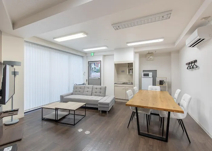 広々とした82m²の東京都Tomihisa Houseアパートメントは東京都の中心に位置し、靖国神社から歩いて25分のところにあります。